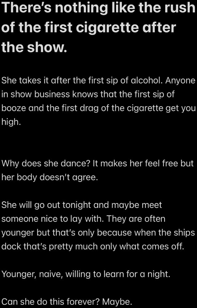 late-night people and followed the music and eased her way down